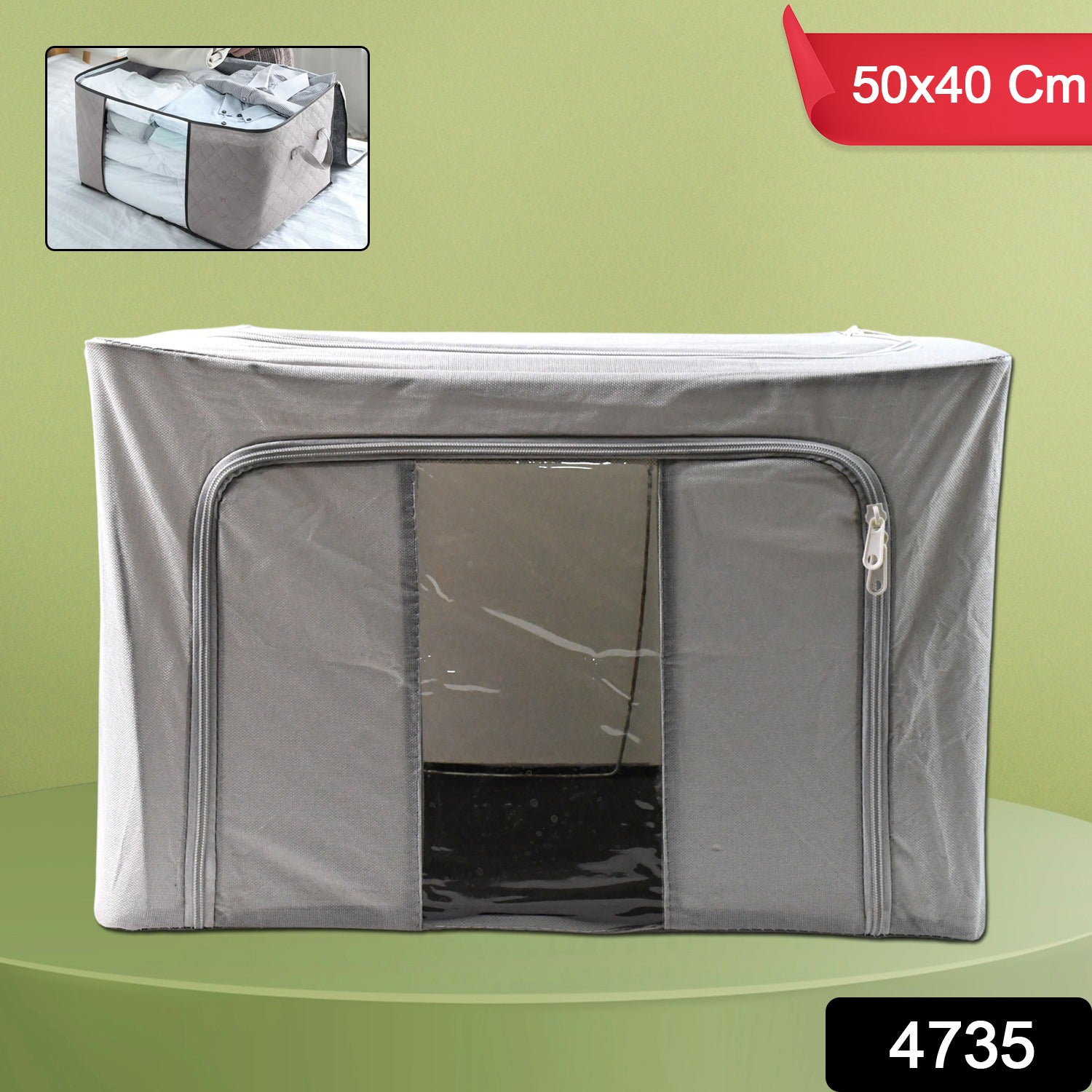 Storage Box with Lid, With Window, Living Box – Storage Boxes for Clothes, Zippered Closet Containers – Duvet, Sheets Closet Organizer – Clothes Boxes (50×40 Cm / 1 Pc)